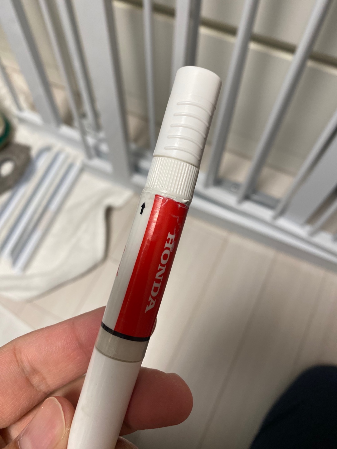 건조 후 보니 금속 부분에 녹이 슬어 있었습니다. 그대로 사용하면 미관상 좋지 않고 손에 묻을 가능성도 있어 자동차 붓펜을 활용해 녹슨 부위를 보수했습니다. 붓펜을 사용하면 쉽게 칠할 수 있고, 금속 보호 효과도 있어 추가 부식을 방지할 수 있어요.