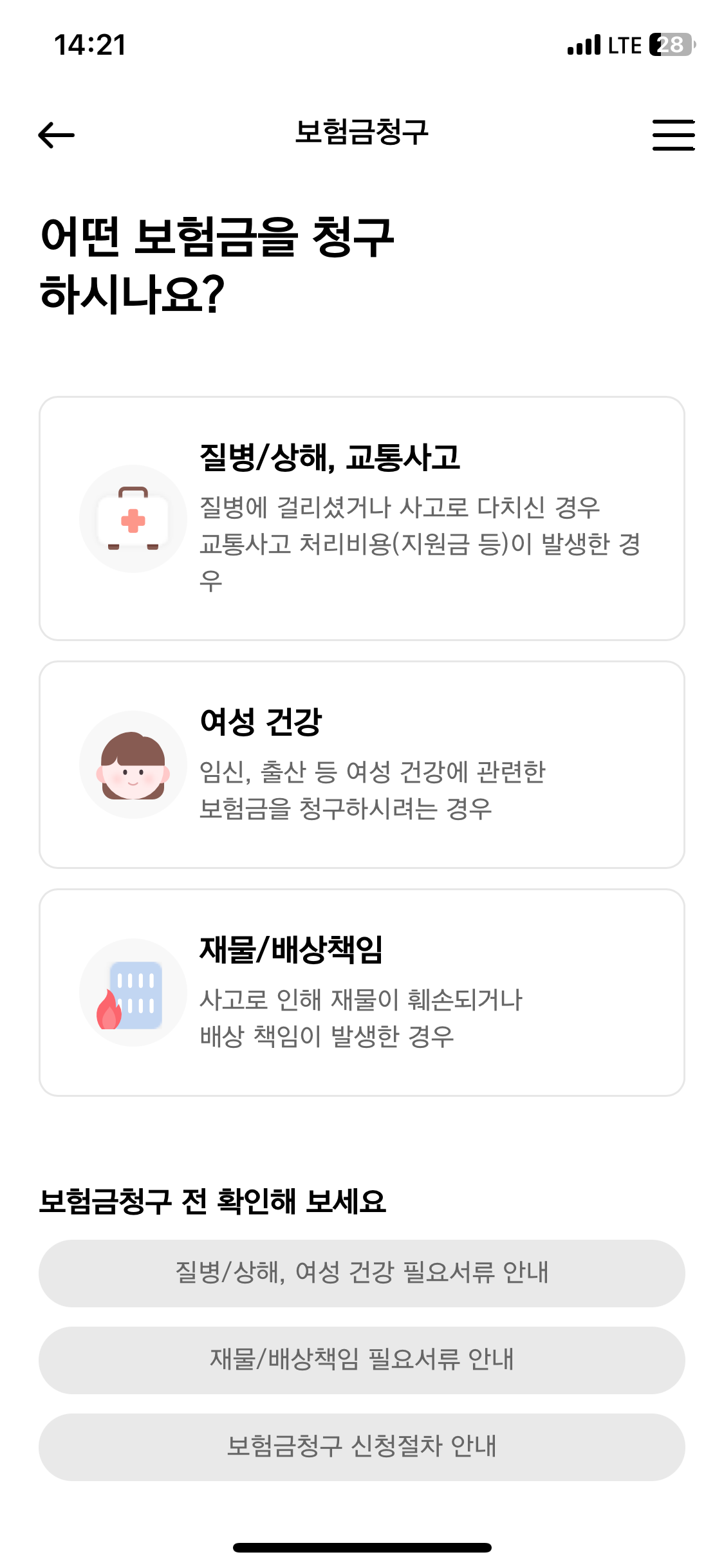 - 메인 화면에서 '보험금 청구' 선택